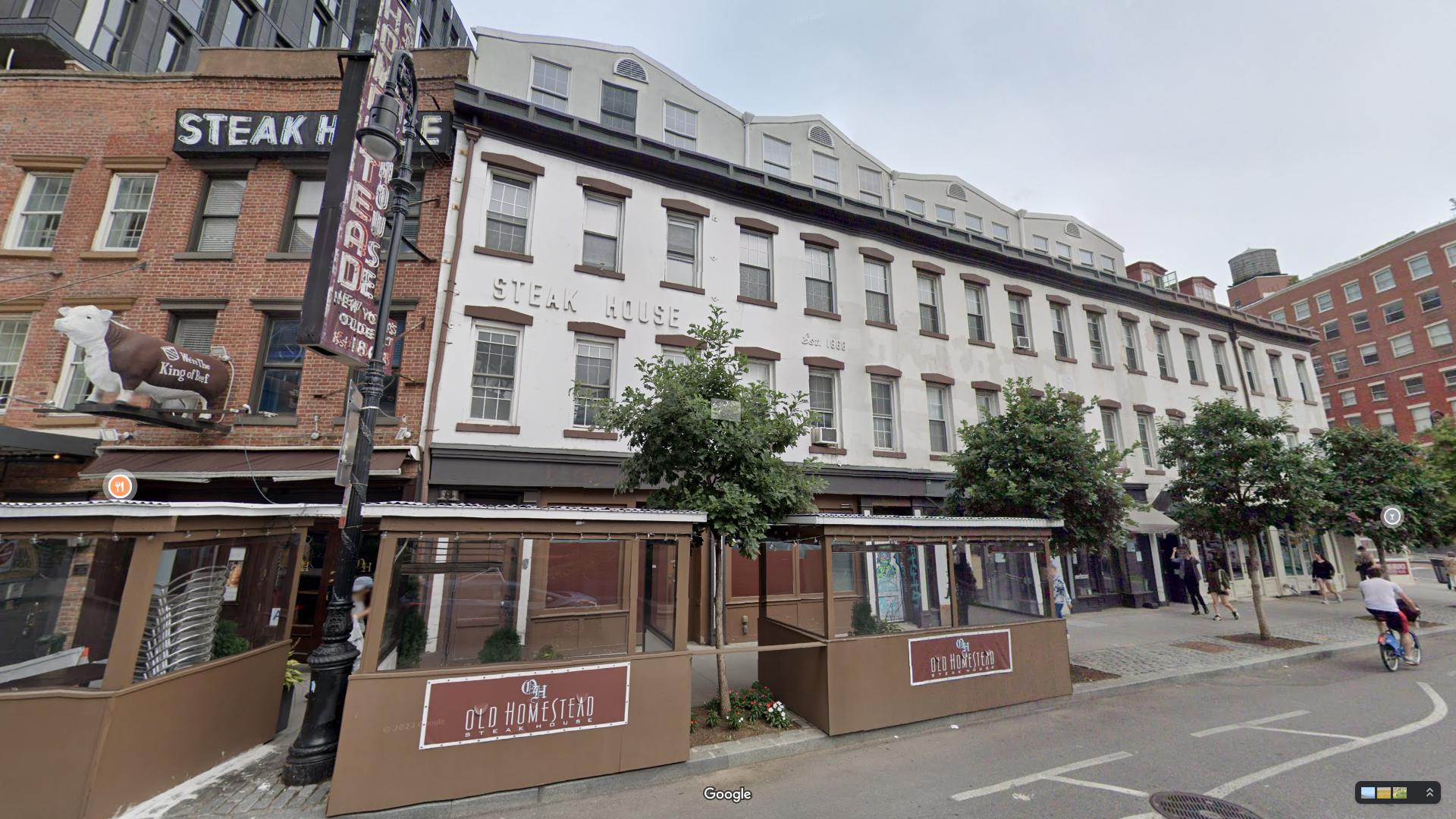 44-54 Ninth Avenue in Manhattan sind ein selten erhaltenes Beispiel für Reihenhäuser mit geneigten Dächern aus den 1840er Jahren, ursprünglich zwischen 1845 und 1846 von William Scott im griechisch-revivalistischen Stil erbaut. Diese Gebäude gehörten zu dem, was als „Homestead Row“ bekannt war. Ihre oberen Etagen behalten Ziegelfassaden mit Stuck und Farbe bei, versehen mit geformten, mit Giebeln versehenen Steinfensterstürzen und geformten Holzkasten-Gesimsen. Die sich über die Gebäude erstreckenden Spitzdächer sind charakteristisch für Entwürfe, die in den 1820er und 1830er Jahren populär waren.