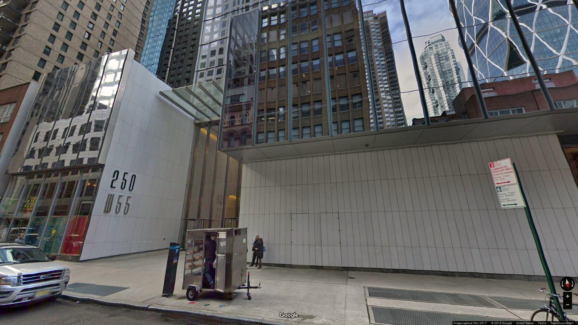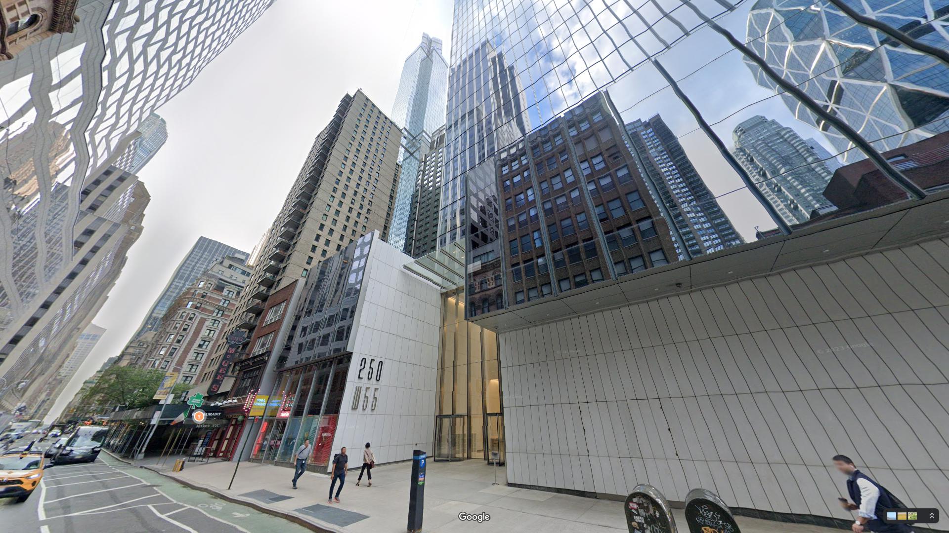 250 West 55th Street, New York, NY 10019, è un importante edificio per uffici situato nel cuore del Theatre District di Manhattan. Questa struttura moderna, costruita nel 2008 e modificata l'ultima volta nel 2015, è alta 40 piani e offre un totale di 843.564 piedi quadrati di spazio per uffici.